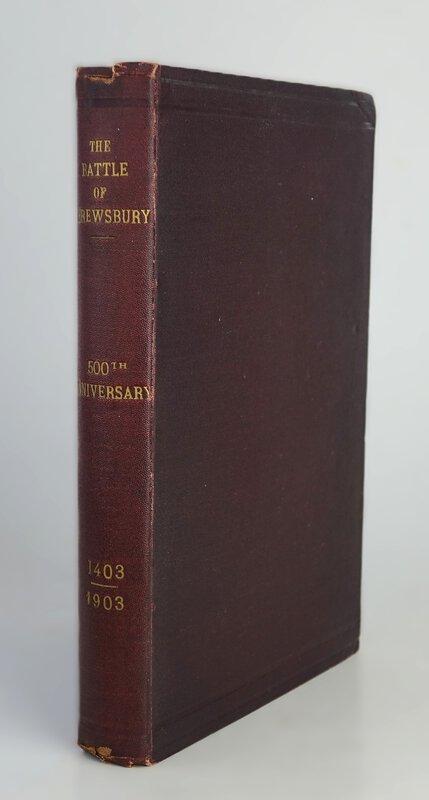Shrewsbury: Adnitt and Naunton, The Square, 1903. 8vo., pp. xliv,196, 20 (programme of the celebration of 500th Anniversary of the Battle of Shrewsbury), burgundy cloth, gilt, b/w plates; ink ownership autograph to front free endpaper, toning to endpapers and edges, slightly affecting margins, very occasional light spots of foxing throughout, overall a very good copy.